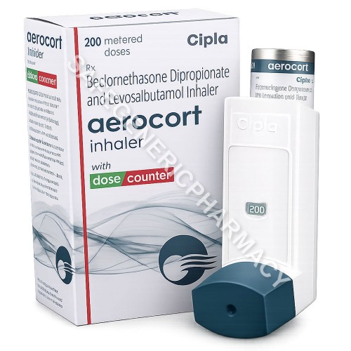 Buy Aerocort Inhaler generic drug of Beclometasone/Levosalbutamol online at low price from the most trusted pharmacy for Asthma. Get all info about this medication like the review, use, how long does the last Composition, side effect, dosage (missed/over), Substitutes, manufactured by Cipla Limited, how it works, Precautions and many more. You can get speedy delivery in the UK, USA, Australia, France, China.