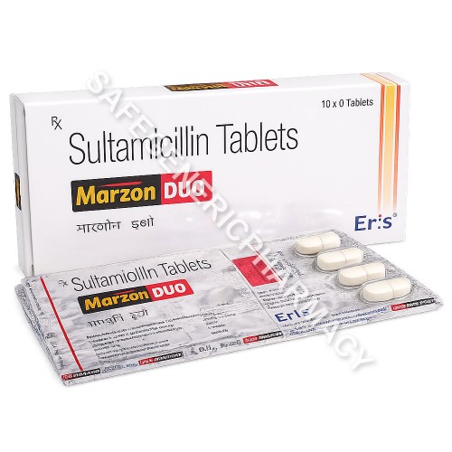 Marzon Tablet contains Sultamicillin, an oral antibiotic used to treat a variety of bacterial infections. Sultamicillin is a combination medicine that delivers ampicillin and sulbactam in the body, helping fight infection-causing bacteria and improving activity against certain resistant organisms.