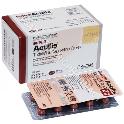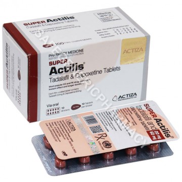 Buy Super Actilis Tablets Generic Drugs of Tadalafil/Dapoxetine online at a low cost. To Heal illness such as Erectile dysfunction and Premature Ejaculation. Know the uses, side effects, review, dosage (missed/over), Composition, Substitutes, Precautions, manufactured by Actiza Pharmaceutical Pvt Ltd India, how long does last, how it works. Get secure & safe delivery in the UK, USA, Australia, France, China.